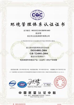 ISO14001環(huán)境管理體系認(rèn)證證書