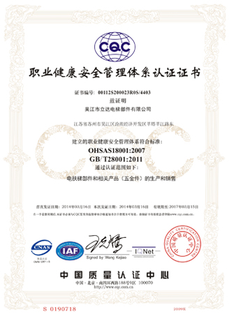 職業(yè)健康安全管理體系OHSAS18001證書