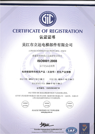 ISO90012008質(zhì)量管理體系認(rèn)證證書